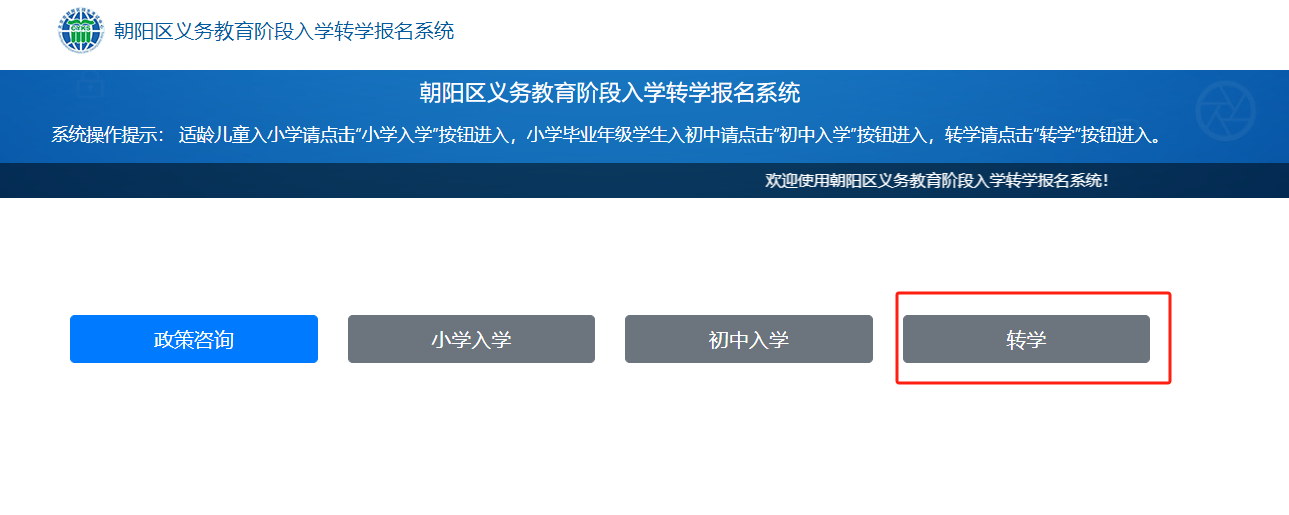 点击进入:朝阳区义务教育阶段入学转学报名系统——选择“转学”