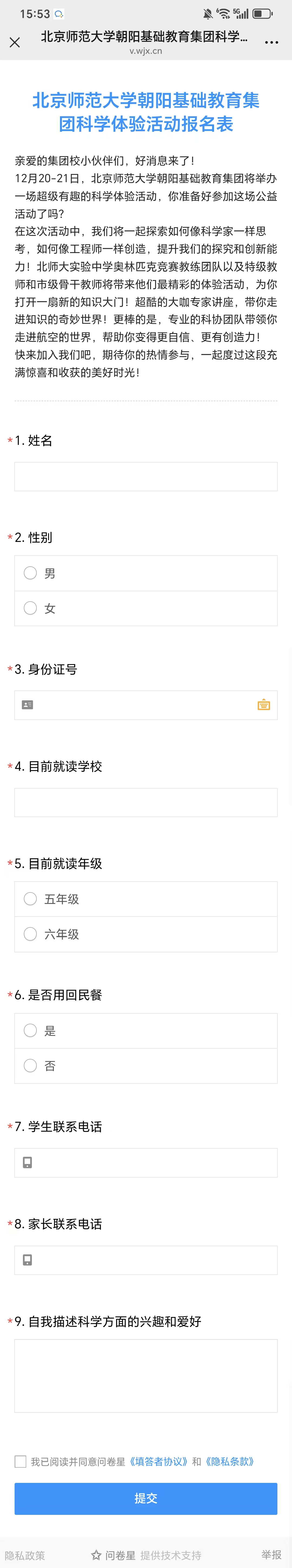 北师大朝阳基础教育集团2026年科学体验活动报名通道