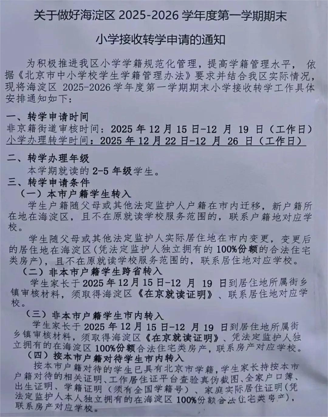 温馨提醒:北京市中小学寒假前转学要求陆续发布,详情可收藏查看北京市各区中小学2024-2025学年度寒假前转学信息汇总(转学通知、材料、方式、流程等)