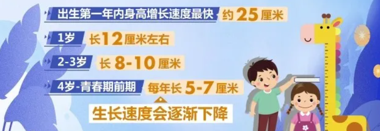 儿童身高是一个非匀称生长的过程,出生第一年内身高增长速度最快,约25厘米;1岁长12厘米左右,2到3岁长8到10厘米,4岁到青春期前期,每年长5到7厘米,但生长速度会逐渐下降。而青春期时,孩子又会有暴发性增长,男孩可长28到30厘米,女孩可长20到25厘米。