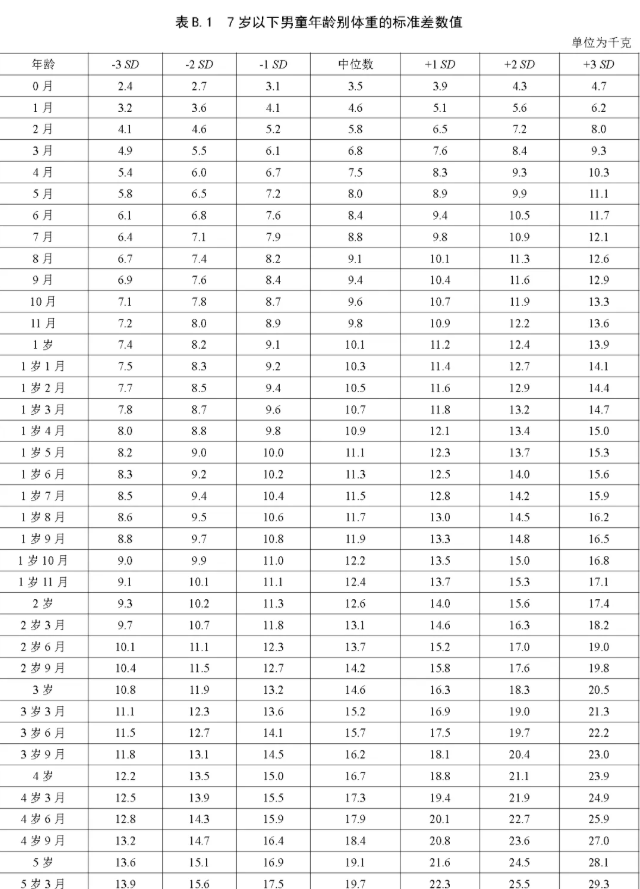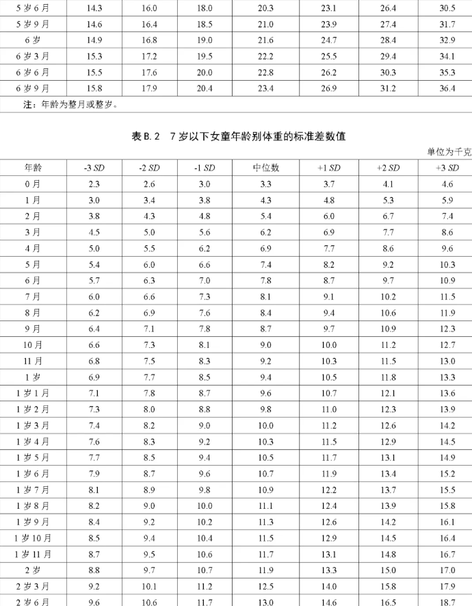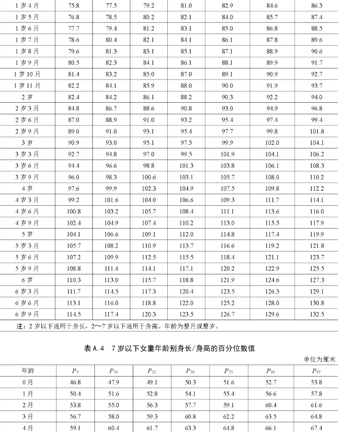 标准包括0-7岁各月龄男童、女童的身长、身高、体重、BMI、头围等内容。家长们可以对照实际数值查询标准中的表格,看看孩子是否达标↓↓