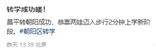 朝阳区转学结果动态分享