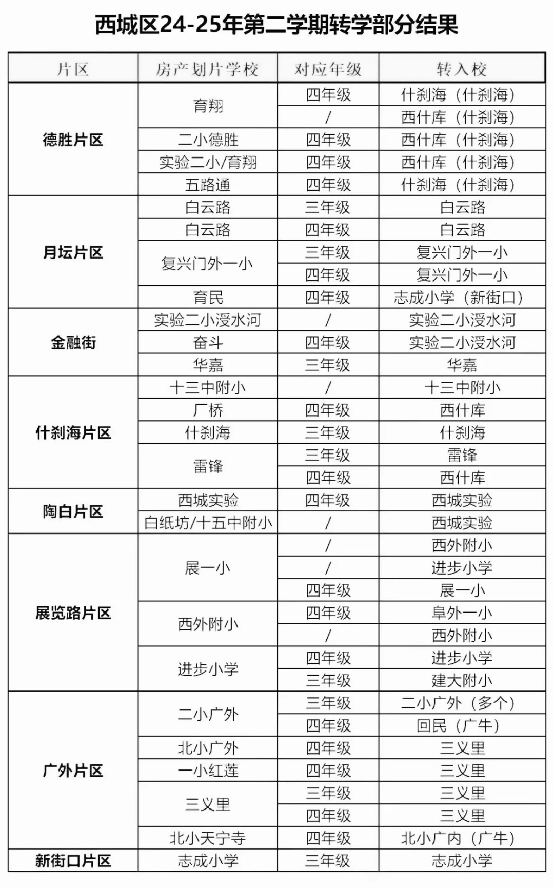 2026年西城区转学家长可先行参考2024-2025学年度转学结果: