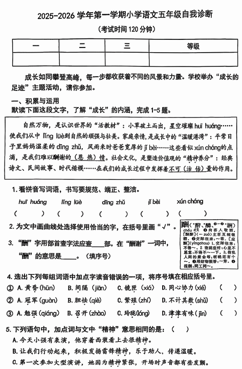 丰台区小学五年级2025-2026学年度第一学期末语文试卷新鲜出炉!孩子通过练习可了解自身学习情况,查漏补缺,快来下载!