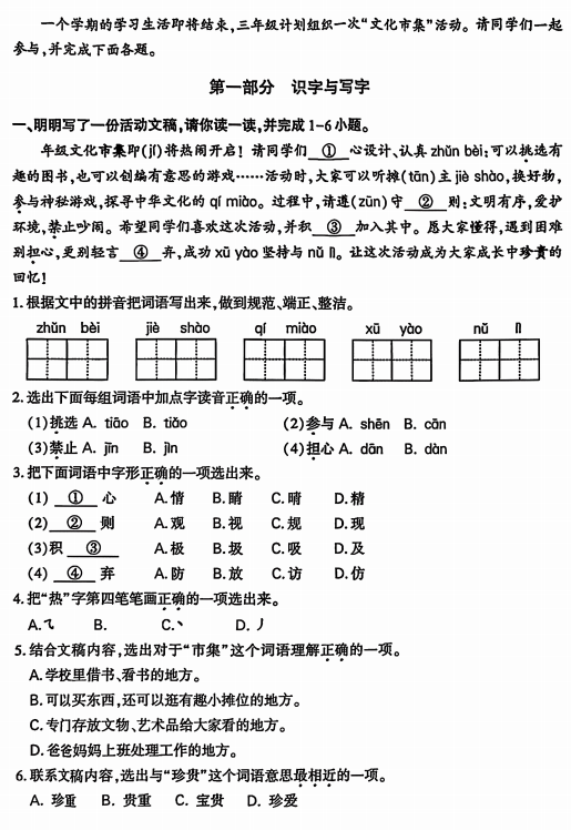 大兴区小学三年级2025-2026学年度第一学期末语文试卷新鲜出炉啦!这份试卷贴合教学实际,涵盖重点知识。孩子通过练习能熟悉考试题型,发现学习不足;家长也可借此了解孩子学习成果,为后续学习提供指引,赶紧获取!