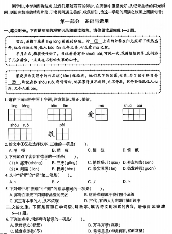 大兴区小学五年级2025-2026学年度第一学期末语文试卷新鲜出炉!孩子借此能查漏补缺、强化知识;家长也可了解孩子学习情况,助力孩子在新学期更上一层楼,别错过!