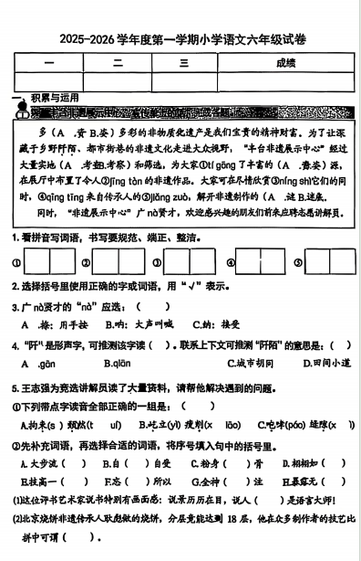 丰台区小学六年级2025-2026学年度第一学期末语文试卷新鲜出炉!孩子通过练习可了解自身学习情况,查漏补缺,快来下载!