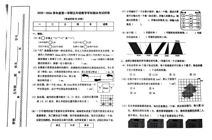 东城区小学五年级2025-2026学年度第一学期末数学试卷
