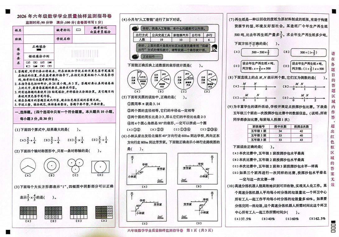 朝阳区小学六年级2025-2026学年度第一学期末数学试卷出炉!孩子借此能查漏补缺、强化知识;家长也可了解孩子学习情况,助力孩子在新学期更上一层楼,别错过!