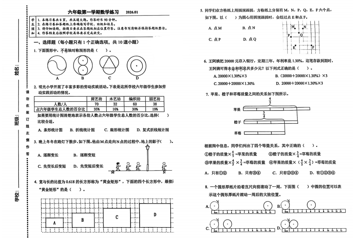 海淀区小学六年级2025-2026学年度第一学期末数学试卷正式发布!点击下文可下载打印,同时本文还包含北京市各区往年中小学真题试卷库,家长可关注使用!