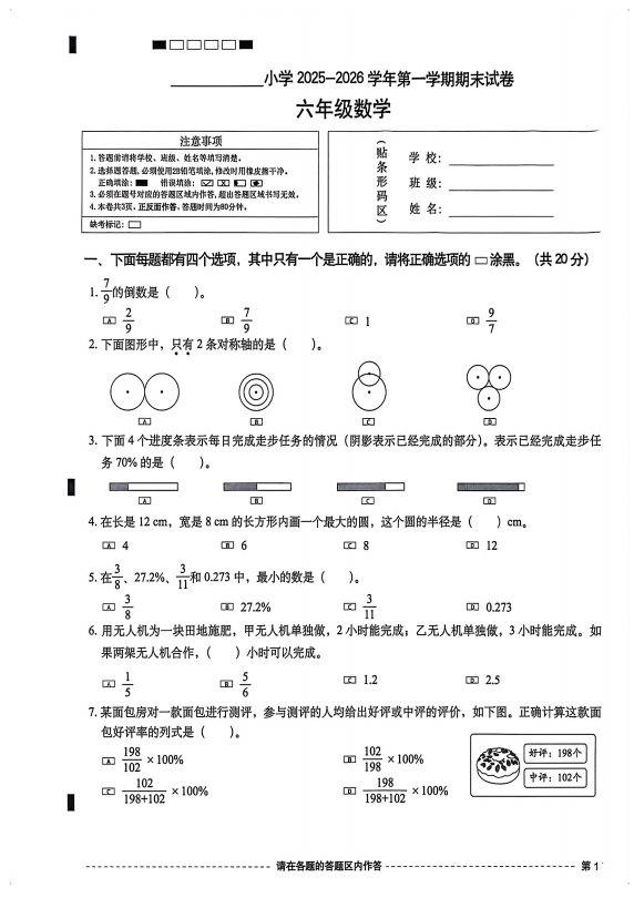 西城区小学六年级2025-2026学年度第一学期末数学试卷正式发布!点击下文可下载打印,同时本文还包含北京市各区往年中小学真题试卷库,家长可关注使用!