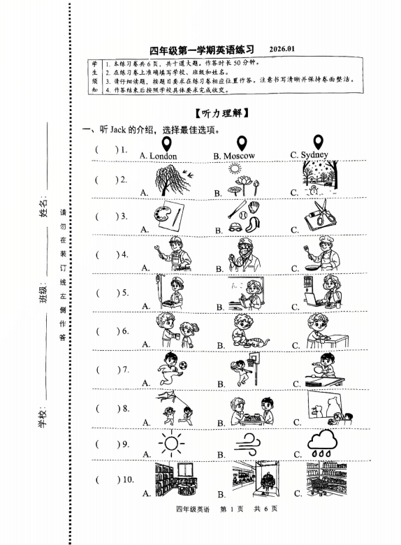 海淀区小学四年级2025-2026学年度第一学期末英语试卷