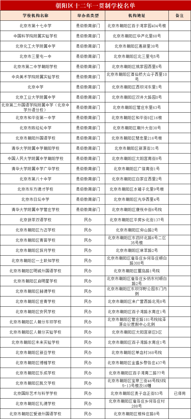 2.本文同步朝阳区教委发布名单,具体请以实际情况为准。