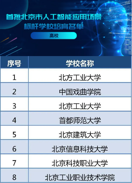 首批北京市人工智能应用场象标杆学校培育名单-高校