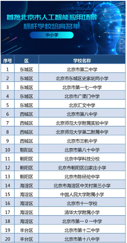 首批北京市人工智能应用场象标杆学校培育名单-中小学