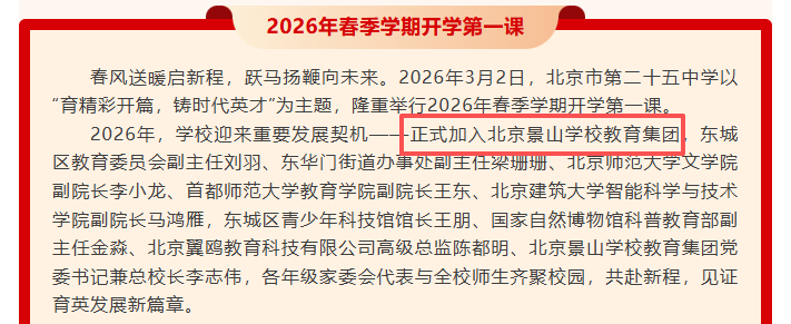 二十五中加入景山教育集团后新机遇