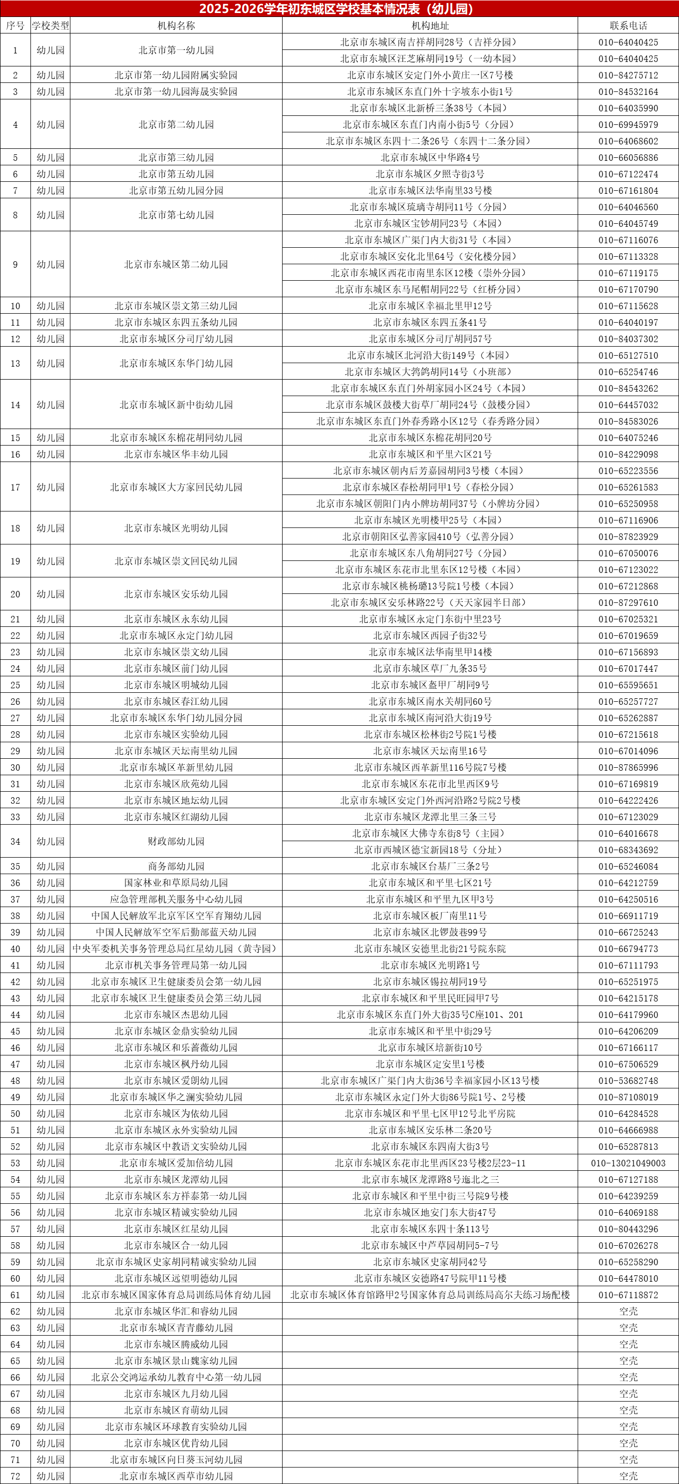 2026年东城区幼儿园名单正式发布!本文整理全区公办完整名录,标注学校地址、联系方式及电话,为东城区家长快速了解东城区内教育资源!