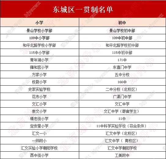 2026年东城区一贯制学校名单