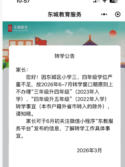 最新消息!东城区官方发布2026年暑假前转学最新消息,您知道哪些年级不能办理?东城区转学办理注意事项有哪些?赶紧和北京幼升小网团队老师一起来看看。