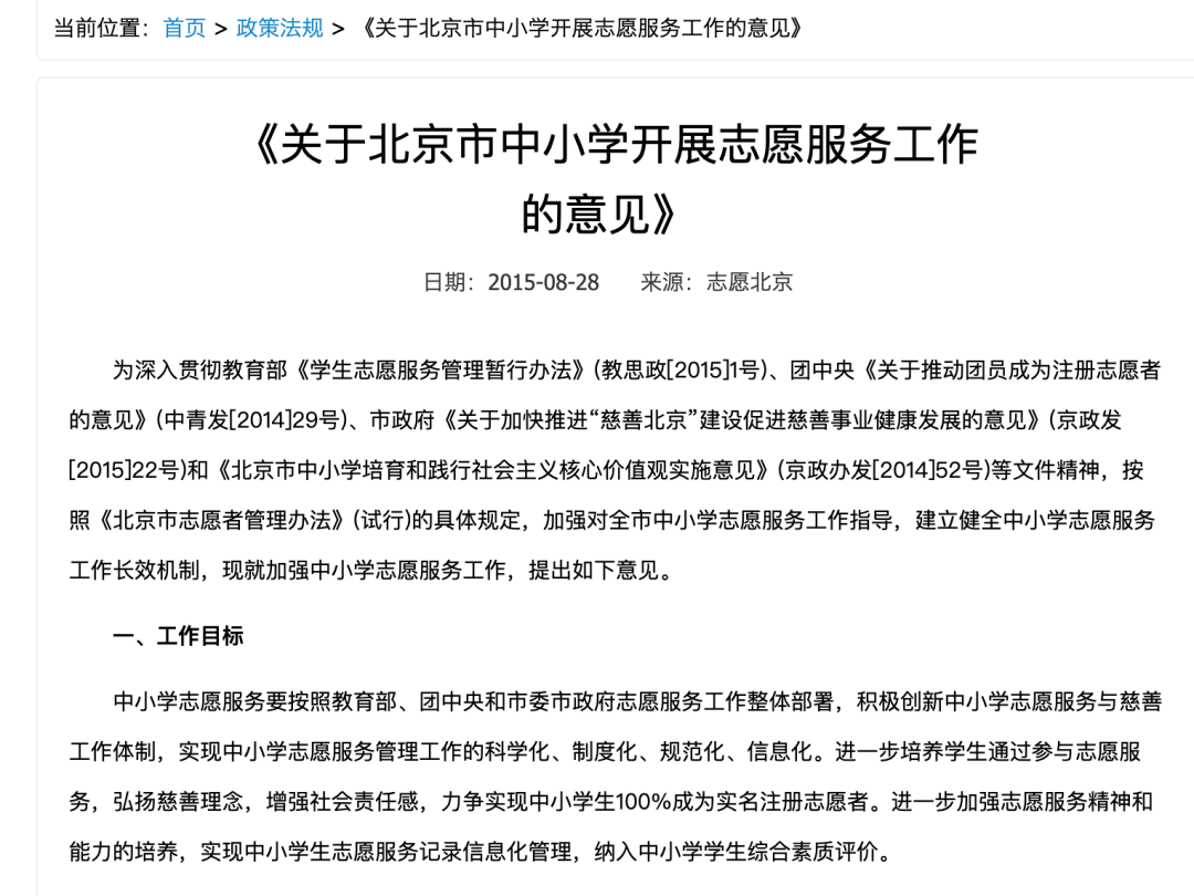 北京市中小学对志愿服务的要求